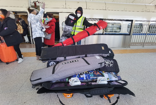 為了更好滿足滑雪愛好者的乘車需求,沈陽局集團公司在保證安全的前提下,準許乘坐敦白高鐵的旅客攜帶滑雪板等裝備上車。
