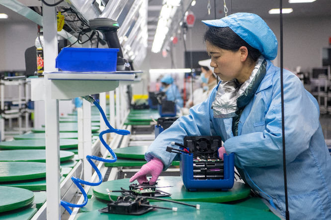 2月13日,在位于重慶市璧山區(qū)的重慶大江動(dòng)力設(shè)備制造有限公司,工作人員在數(shù)字化工廠內(nèi)作業(yè)。該企業(yè)是工信部第二批專精特新“小巨人”企業(yè)。近年來(lái)該企業(yè)在打造數(shù)字化工廠的同時(shí)積極投入研發(fā)新能源產(chǎn)品,在生產(chǎn)和研發(fā)兩個(gè)領(lǐng)域共同推進(jìn)企業(yè)轉(zhuǎn)型升級(jí)。