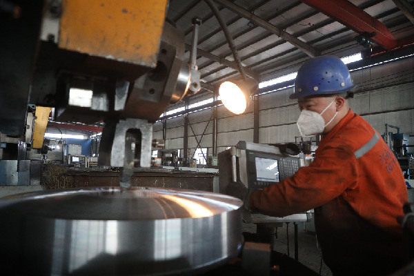 在衡水宏祥橋梁工程材料科技有限公司,工人操縱立式車床加工橋梁支座。受訪者供圖