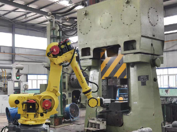 在鋼諾公司車間,一臺機(jī)器人站在裁切、沖壓兩個工序間,用鋼鉗轉(zhuǎn)移8公斤重的鋼段,連續(xù)10小時重復(fù)一個動作,每天可搬運40噸原料,其效率、安全性和精準(zhǔn)度遠(yuǎn)超人工。