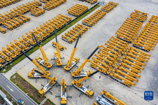 這是2022年5月9日拍攝的江蘇徐工集團(tuán)重型機(jī)械有限公司的產(chǎn)品調(diào)試場(無人機(jī)照片)。新華社發(fā)