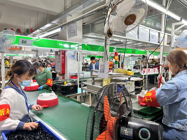 農(nóng)行廣東順德分行為小熊電器提供全方位金融服務(wù),助力其打造年輕人喜愛(ài)的小家電品牌。圖為小熊電器的生產(chǎn)車(chē)間內(nèi),工人們正忙得熱火朝天。