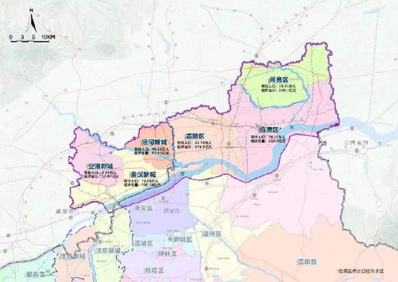 “北跨”主要是向北跨渭河發(fā)展拉大城市骨架,優(yōu)化西安城市空間布局。從區(qū)域來看,“北跨”戰(zhàn)略主要涉及高陵區(qū)、閻良區(qū)、臨潼區(qū)、西咸新區(qū)直管區(qū)(秦漢新城、涇河新城、空港新城)等渭河北岸各板塊,以及渭河南岸未央?yún)^(qū)、經(jīng)開區(qū)、灞橋區(qū)、國際港務區(qū)的部分區(qū)域。