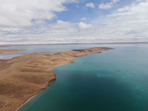 這是2021年5月25日在青海省果洛藏族自治州拍攝的三江源國家公園黃河源園區(qū)內(nèi)的鄂陵湖(無人機(jī)照片)。新華社記者 李占軼 攝