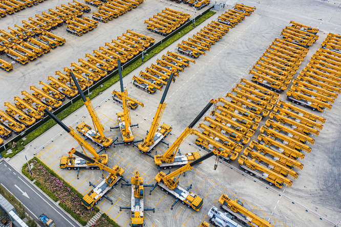 江蘇徐工集團(tuán)重型機(jī)械有限公司產(chǎn)品調(diào)試場(無人機(jī)照片)。新華社發(fā)