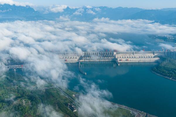 這是5月17日在湖北省宜昌市秭歸縣拍攝的三峽云海景觀。