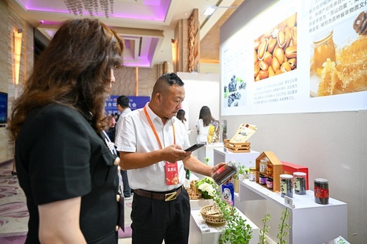 參會(huì)嘉賓在第八屆全球吉商大會(huì)上參觀吉林特色商品。 新華社記者 顏麟蘊(yùn) 攝