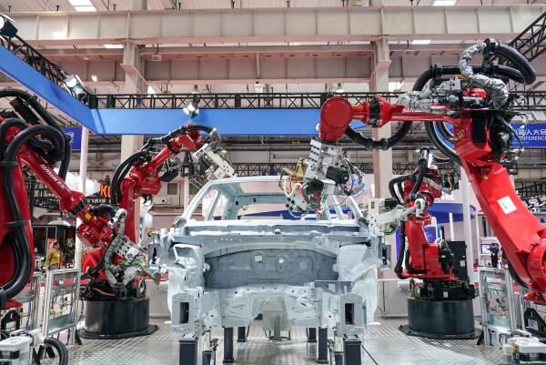 這是8月16日拍攝的白車身焊點機器人工作站。當日,2023世界機器人大會在北京開幕,本次大會的主題為“開放創(chuàng)新 聚享未來”,包含論壇、博覽會、機器人大賽等活動。