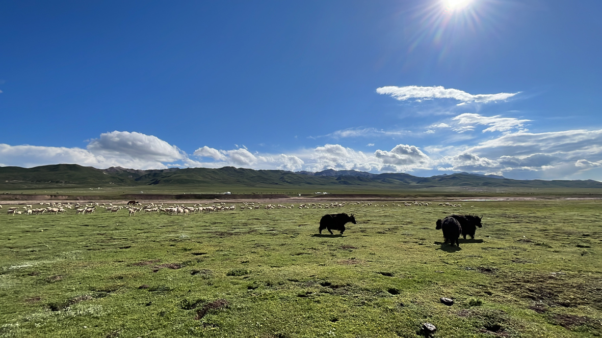 祁連縣牧民放牧的牦牛和藏羊。袁小康 攝