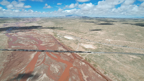 青藏鐵路列車通過(guò)楚瑪爾河。