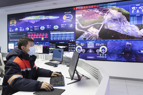 在鶴崗市蘿北縣,中國五礦集團(tuán)(黑龍江)石墨產(chǎn)業(yè)有限公司的工作人員在調(diào)度指揮中心內(nèi)作業(yè)(2022年12月9日攝)。