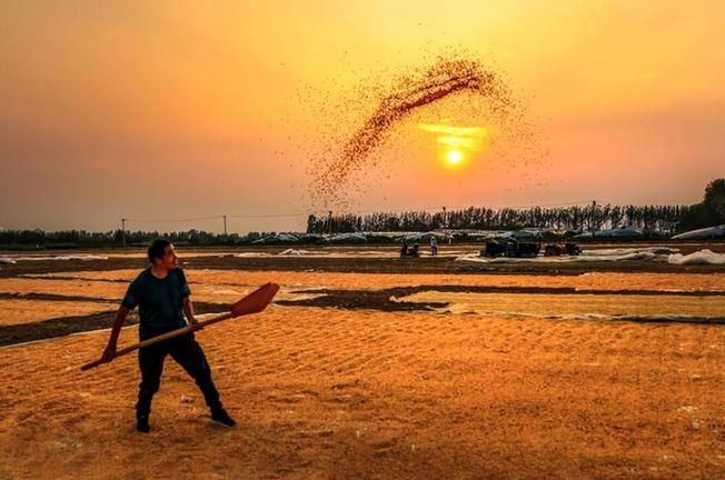 在河南省扶溝縣永珍家庭農(nóng)場,一棟棟鐵絲圈制成的圓柱形糧囤整齊排列、格外耀眼,村民們將收獲后的玉米儲(chǔ)存起來,等待脫粒、晾曬、烘干。