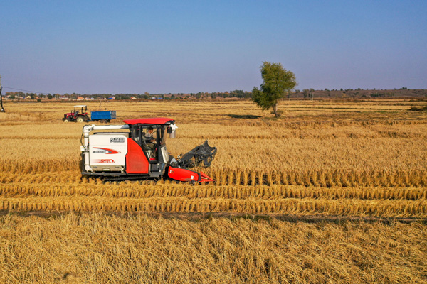 10月14日,農(nóng)機(jī)手在通遼市科爾沁左翼后旗金寶屯鎮(zhèn)套布海村駕駛收割機(jī)收割水稻(無人機(jī)照片)。目前,內(nèi)蒙古自治區(qū)通遼市2030萬畝糧食作物正值收獲季,田間一片豐收景象。內(nèi)蒙古通遼市地處“玉米黃金種植帶”,今年玉米種植面積達(dá)1800多萬畝。由于淺埋滴灌、高密度栽培、全程機(jī)械化等生產(chǎn)技術(shù)的運(yùn)用,通遼市玉米畝產(chǎn)穩(wěn)中有升。在通遼市科爾沁左翼后旗,水稻也收獲過半。今年夏季,科爾沁左翼后旗多個(gè)鄉(xiāng)鎮(zhèn)遭遇洪澇災(zāi)害,但得益于提前疏通排干渠,當(dāng)?shù)厮井a(chǎn)量穩(wěn)中有升。