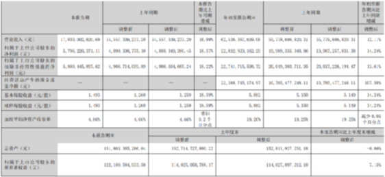 10月27日晚間,五糧液發(fā)布《2023年度第三季度報(bào)告》。報(bào)告顯示,2023年1-9月,五糧液實(shí)現(xiàn)營業(yè)收入625.36億元,同比增長12.11%;歸屬上市公司股東的凈利潤228.33億元,同比增長14.24%。7-9月,實(shí)現(xiàn)營業(yè)收入170.30億元,同比增長16.99%;歸屬上市公司股東的凈利潤57.96億元,同比增長18.57%。2023年前三季度,五糧液繼續(xù)保持兩位數(shù)穩(wěn)健增長,為全年經(jīng)營目標(biāo)任務(wù)達(dá)成奠定堅(jiān)實(shí)基礎(chǔ)。