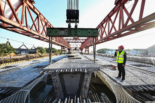 圖為中鐵二十局工作人員在蘇臺高速公路七都至桃源段ST-QL5標主線橋梁架設(shè)現(xiàn)場指揮。近日,由中鐵二十局承建的蘇臺高速公路七都至桃源段ST-QL5標主線橋梁全幅貫通,為建成通車打下堅實基礎(chǔ)。據(jù)介紹,蘇州至臺州高速公路七都至桃源段ST-QL5標項目為江蘇省重點工程。