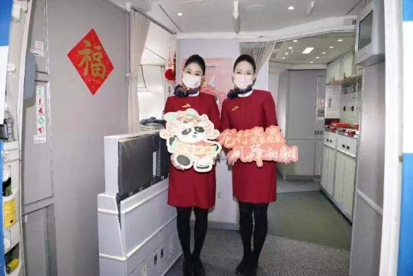 “今天是中國傳統(tǒng)的除夕夜,非常高興能和大家相聚在本次國航春節(jié)主題航班上,在萬米高空共度這個團圓中國年!”2月9日,國航CA931航班的機長廣播里傳來了新春祝福。當天,這架“龍行龘龘 鳳舞翩翩”主題航班從北京飛往法蘭克福,這也是中國農(nóng)歷新年被列為聯(lián)合國假日后,國航首次在國際航班舉辦的春節(jié)主題航班。