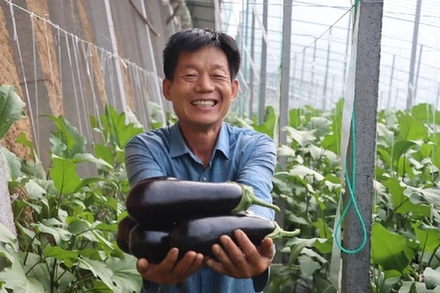圖為紀臺鎮(zhèn)孟家官莊村菜農孟祥孝正在采摘茄子。受訪者供圖