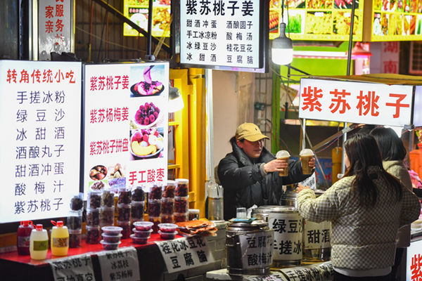 位于長沙市天心區(qū)裕南街街道的東瓜山夜市是長沙美食地標(biāo)之一,也是當(dāng)?shù)叵M經(jīng)濟和個體工商戶發(fā)展的“風(fēng)向標(biāo)”。一兩百米長的街巷里,有30多家經(jīng)營奶茶、燒烤、肉腸、紫蘇桃子姜等美食的小店。