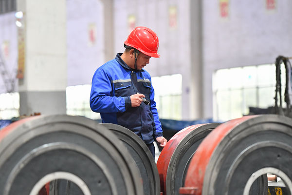 長沙佳能通用泵業(yè)有限公司的員工在檢查多級泵構(gòu)件。記者 陳澤國 攝
