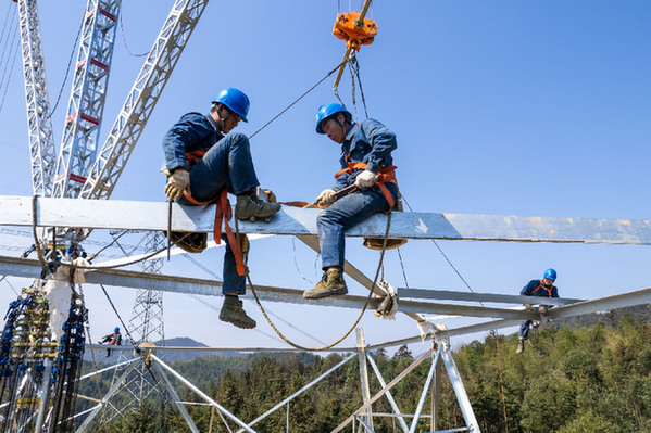 當日,在湖南省益陽市安化縣冷市鎮(zhèn),湖南省送變電工程有限公司電力工人抓緊推進“寧電入湘”工程組塔工作,力爭項目早日建成運營。 新華社記者 陳思汗 攝