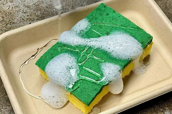 淋上“洗潔精”,“百潔布”在餐盤上抹上一圈后,被店員放入口中食用……這樣的獵奇視頻在短視頻平臺上大量傳播。不少人紛紛感慨評論道:“起猛了,百潔布也能吃?”其實,視頻里的“百潔布”是一款造型獨特的蛋糕食品,并配以糖漿做的“洗潔精”、奶泡做的“泡沫”,以達到獨特的視覺效果。