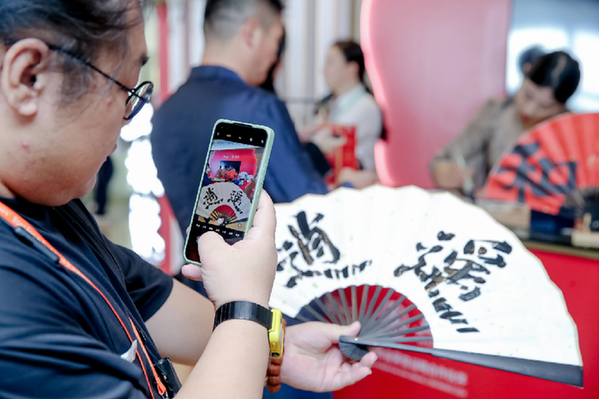 在五糧液精心布置的書法創(chuàng)作區(qū),青年書法家揮毫潑墨,邀請全球嘉賓在折扇上寫下“心中的和美”,“萬事勝意”“健康喜樂”“幸福平安”“逍遙”等寄語傳遞著對世界和家人的和美祝福。一位現(xiàn)場嘉賓表示:“和美是飽含美好寓意的詞語,這次活動將書法、折扇與‘和美’結合,向世界宣揚了中華文化,非常有意義?!?/p>