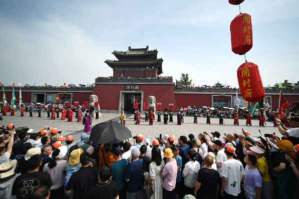 5月19日,游客在河南省開封市開封府觀看表演。 新華社發(fā)(李俊生 攝)