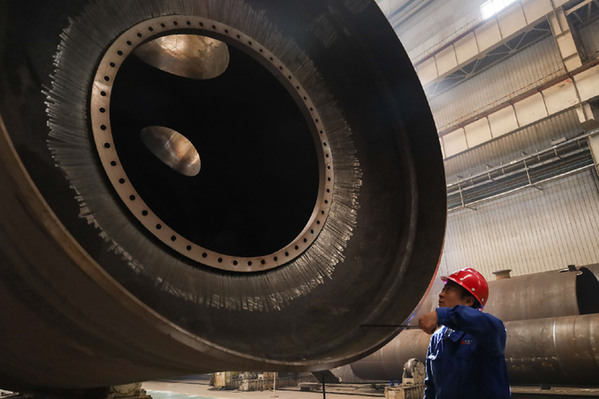 工人在蘭州新區(qū)蘭石集團(tuán)高端裝備產(chǎn)業(yè)園的生產(chǎn)車間作業(yè)。 記者 馬希平 攝