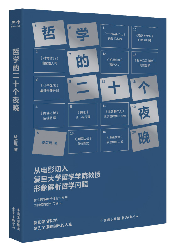 有人會說,哲學(xué)高不可攀。那么我會把《哲學(xué)的二十個(gè)夜晚》推薦給他。讀這本書就像在翻閱和徐英瑾教授的深夜聊天記錄,他在用電影中的故事給我們講哲學(xué)。電影中的那些情節(jié),在書中被拆開揉碎,深挖出其中的哲學(xué)意蘊(yùn)。從《肖申克的救贖》里的自由夢想到《間諜之橋》里的合作博弈,這本書帶著我們一邊看電影,一邊學(xué)哲學(xué),四大主題——論證、未來、社會、人生,每一個(gè)主題都由淺入深,妙趣橫生,通過二十個(gè)哲學(xué)問題幫助我們從理性的角度理解復(fù)雜多變的人生。(儲學(xué)軍??新華網(wǎng)董事長