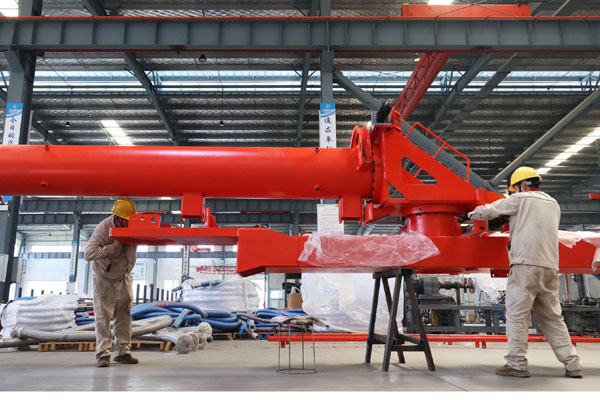 5月27日,江蘇連云港海州經(jīng)濟(jì)開發(fā)區(qū)新浦工業(yè)園一家企業(yè)的工人在組裝一臺(tái)流體裝卸臂。新華社發(fā) 耿玉和 攝