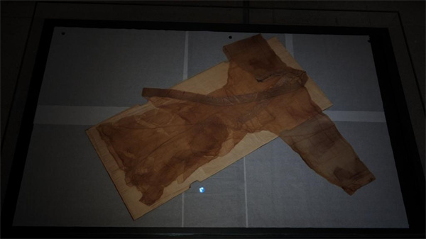 ??“素紗單衣有兩件,一件是直裾,一件是曲裾,都是右衽。其中,直裾的是49克,衣長(zhǎng)128厘米;曲裾的是48克,衣長(zhǎng)160厘米。曲裾的素紗單衣在工藝上相對(duì)更高超,因?yàn)樗L(zhǎng)、更寬,卻還輕1克?!痹S寧寧說(shuō),“直裾素紗單衣在館內(nèi)馬王堆漢墓基本陳列中常年展出,此次展覽中,我們特意安排了這件從未對(duì)外展出過(guò)的曲裾素紗單衣真品?!?/p>