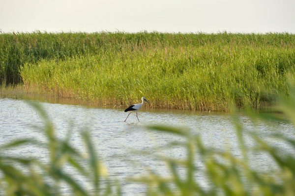 行車過程中,透過車窗,記者注意到,不少電線桿上都有一個鳥巢。帶著好奇,記者詢問了黃河三角洲生態(tài)監(jiān)測中心副主任趙亞杰。她介紹,這是保護(hù)區(qū)專門為東方白鸛搭建的“人工巢”?!俺蚕戮褪菨竦厮?,可以捕捉魚類、青蛙等食物。水下是‘餐桌’,水上是‘育嬰房’,是東方白鸛理想的孵化育幼環(huán)境。”