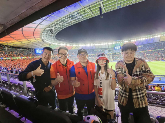 比賽當(dāng)天,京東采銷早早就來到柏林奧林匹克體育場,通過直播帶領(lǐng)大家領(lǐng)略了球場外的氛圍、品嘗球場周邊的德國當(dāng)?shù)仄【啤⒔榻B荷蘭和土耳其兩支球隊(duì)此前的表現(xiàn),并拿出了迷你足球裝備與現(xiàn)場球迷共同切磋球技。同時(shí),針對直播間觀眾關(guān)于球場內(nèi)外的問題,京東采銷也進(jìn)行了互動解答,讓大家在屏幕前也能身臨其境地感受到歐洲杯的火熱氛圍。
