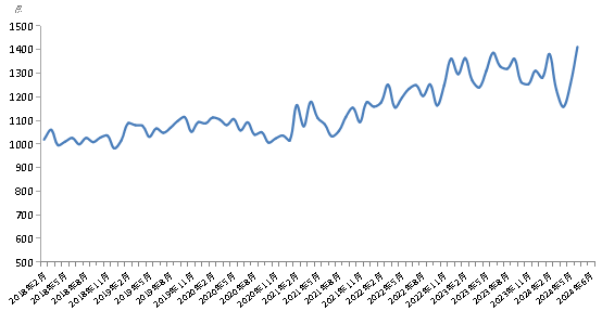 新華財經北京7月10日電(陸子琛、馬兵)6月份,新華·中鹽食用鹽(商超)價格指數(shù)報1411.76點,較上期(2024年5月)上漲158.16點,漲幅12.62%;較基期(2018年1月)上漲411.76點,漲幅41.18%;刷新指數(shù)運行周期內最高值;較周期內最低點981.91點(2018年12月)上漲429.85點,漲幅43.78%。