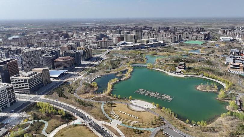 ??這是雄安新區(qū)金湖公園(2024年3月29日攝,無人機(jī)照片)。新華社記者 牟宇 攝