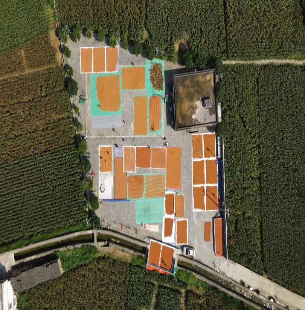 貴州仁懷茅壩鎮(zhèn)官院村村民翻曬在村里廣場上的紅纓子高粱種子。盧志佳 攝