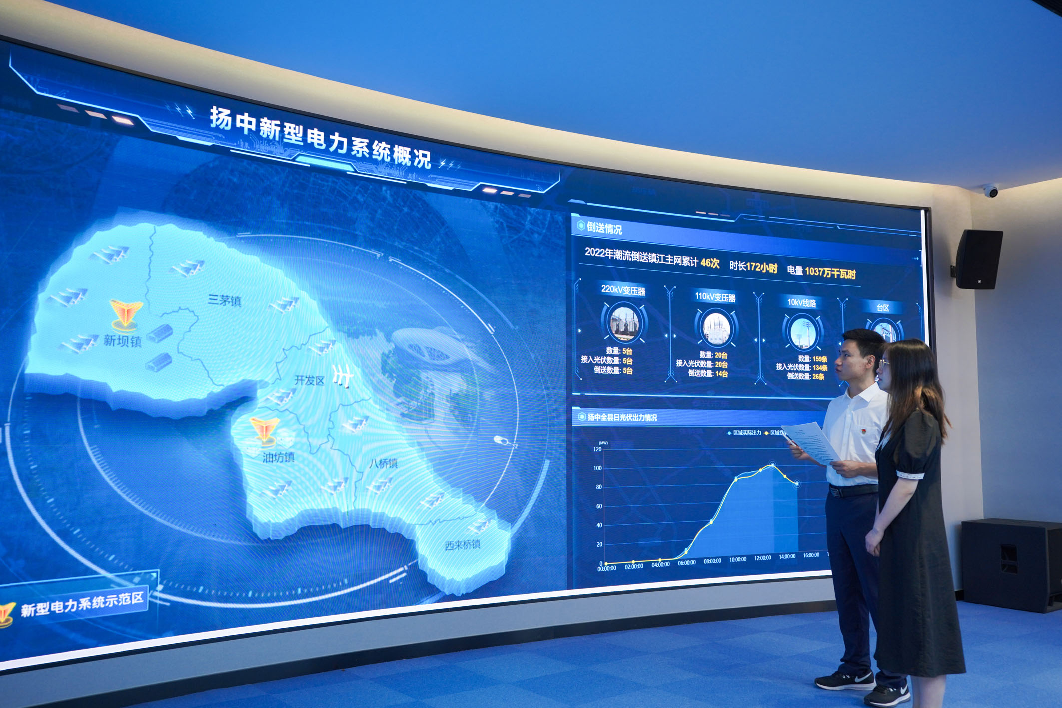 圖為在國(guó)網(wǎng)揚(yáng)中市供電公司,工作人員正在介紹新型電力系統(tǒng)建設(shè)。資料照片