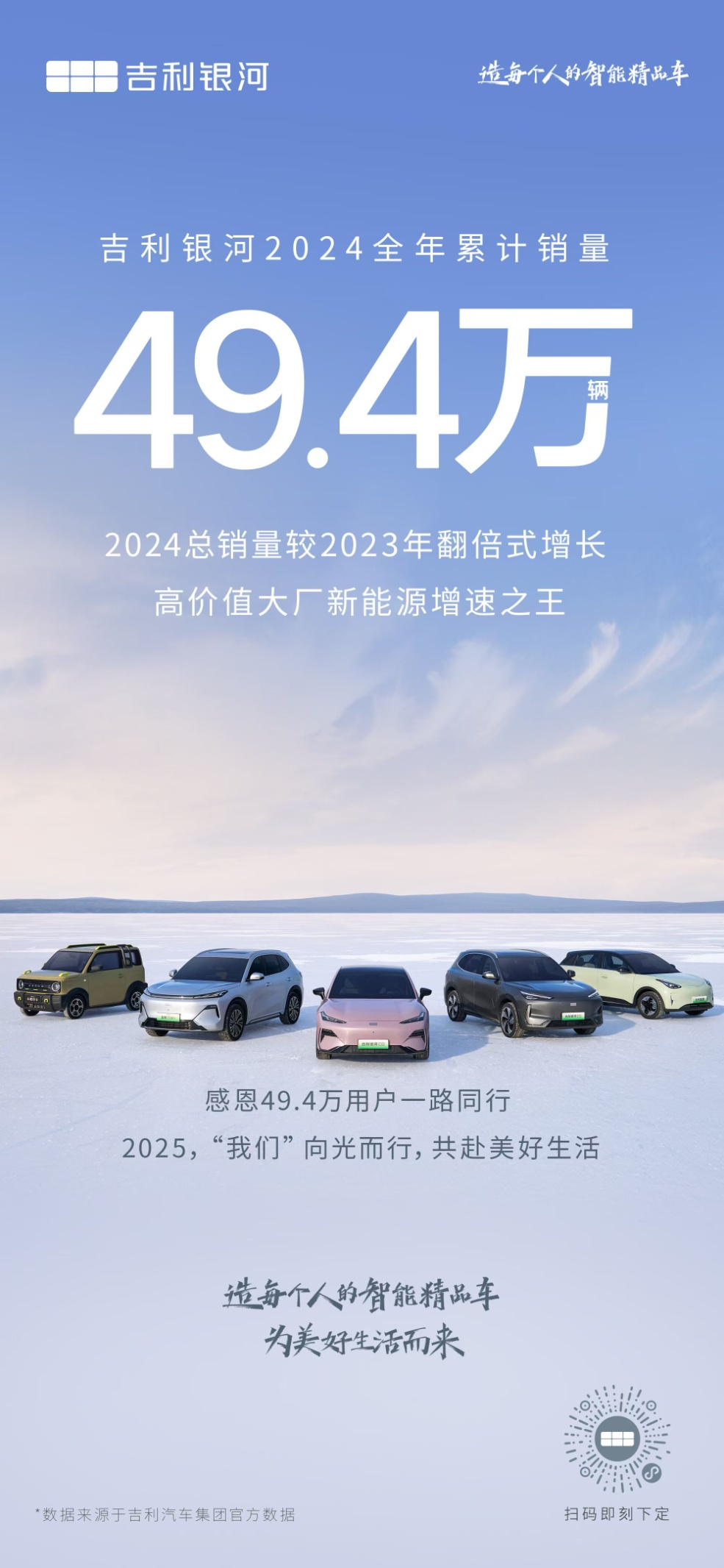 在全球汽車行業(yè)加速邁向智能新能源時代的背景下,吉利汽車集團作為在汽車、芯片、衛(wèi)星、飛行器、手機及AI大模型等領(lǐng)域的全智能科技生態(tài)布局的車企,超額完成既定銷量目標(biāo),整體銷量全線上漲,增速跑贏行業(yè)大盤。在全年推出的9款全新新能源車型中,吉利新能源連續(xù)推出多款爆款車型,拉開新一輪新品上升周期。