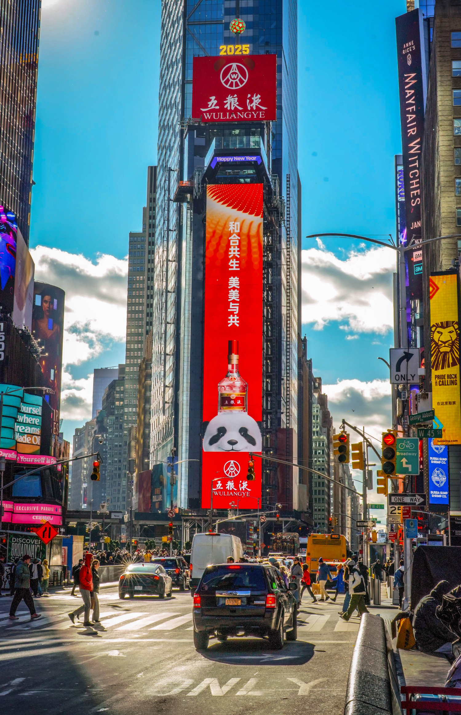 當(dāng)?shù)貢r間1月2日,美國紐約時報廣場水晶球大樓上,一只身著“中國紅”裝扮的大熊貓悄然亮相。這是五糧液在紐約時代廣場投放的首支大型3D廣告片,巧妙地融合了國寶大熊貓、五糧液酒等深受海外民眾喜愛的中國元素,瞬間吸引了全球目光?,F(xiàn)場觀眾對這支廣告表現(xiàn)出濃厚的興趣,紛紛駐足用手機拍照留念,記錄下“和美”瞬間。