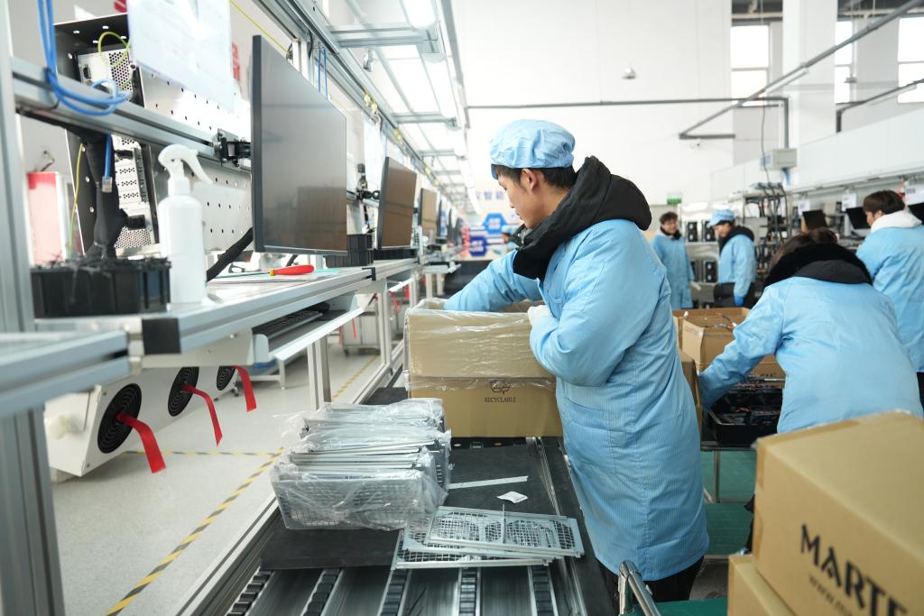 寧夏星漢智能科技有限公司的生產(chǎn)車間里,工人在組裝服務(wù)器。新華社發(fā)(唐紫宸 攝)