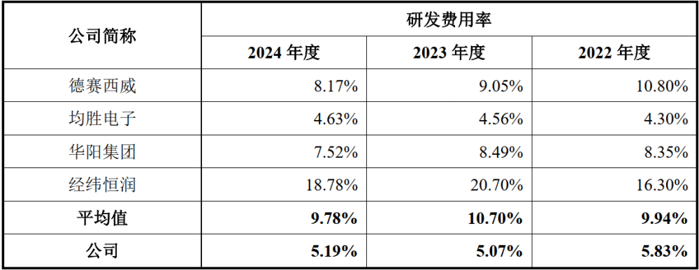 研發(fā)費(fèi)用率低于同行可比公司均值