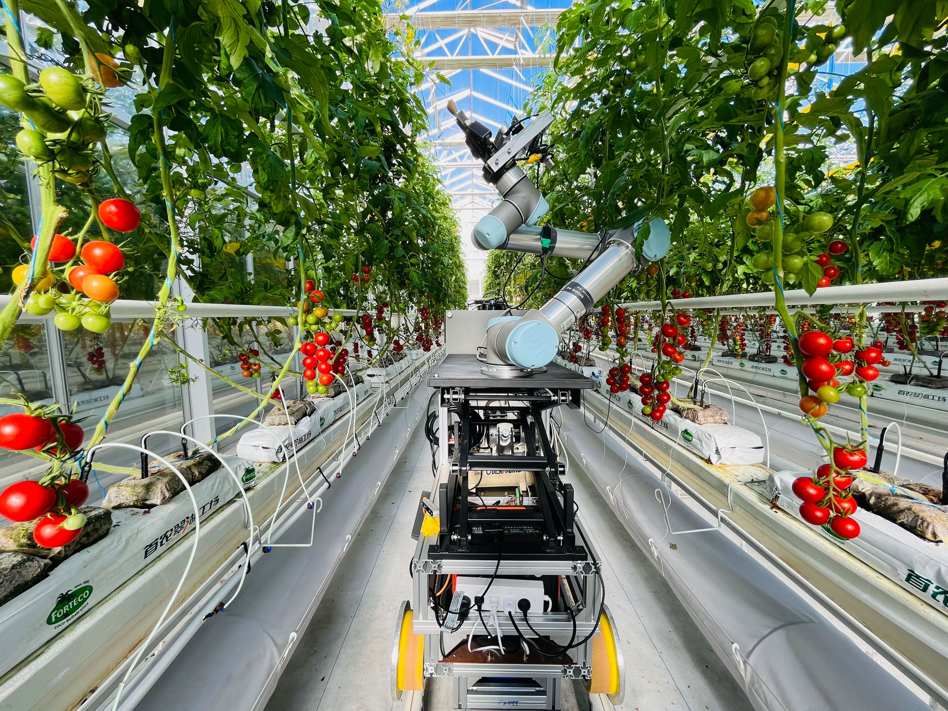 智能育種機器人“吉兒”在位于北京的一個現(xiàn)代化商業(yè)溫室中進行番茄自動雜交授粉操作(2024年11月29日攝)。8月11日,全球首臺全流程智能育種機器人“吉兒”(GEAIR)登上國際學術期刊《細胞》雜志?!凹獌骸庇芍袊茖W院遺傳與發(fā)育生物學研究所和自動化研究所科研團隊合作研制,能夠精準識別花朵、伸出機械臂輕柔完成雜交授粉,代替工人完成全流程育種工作。