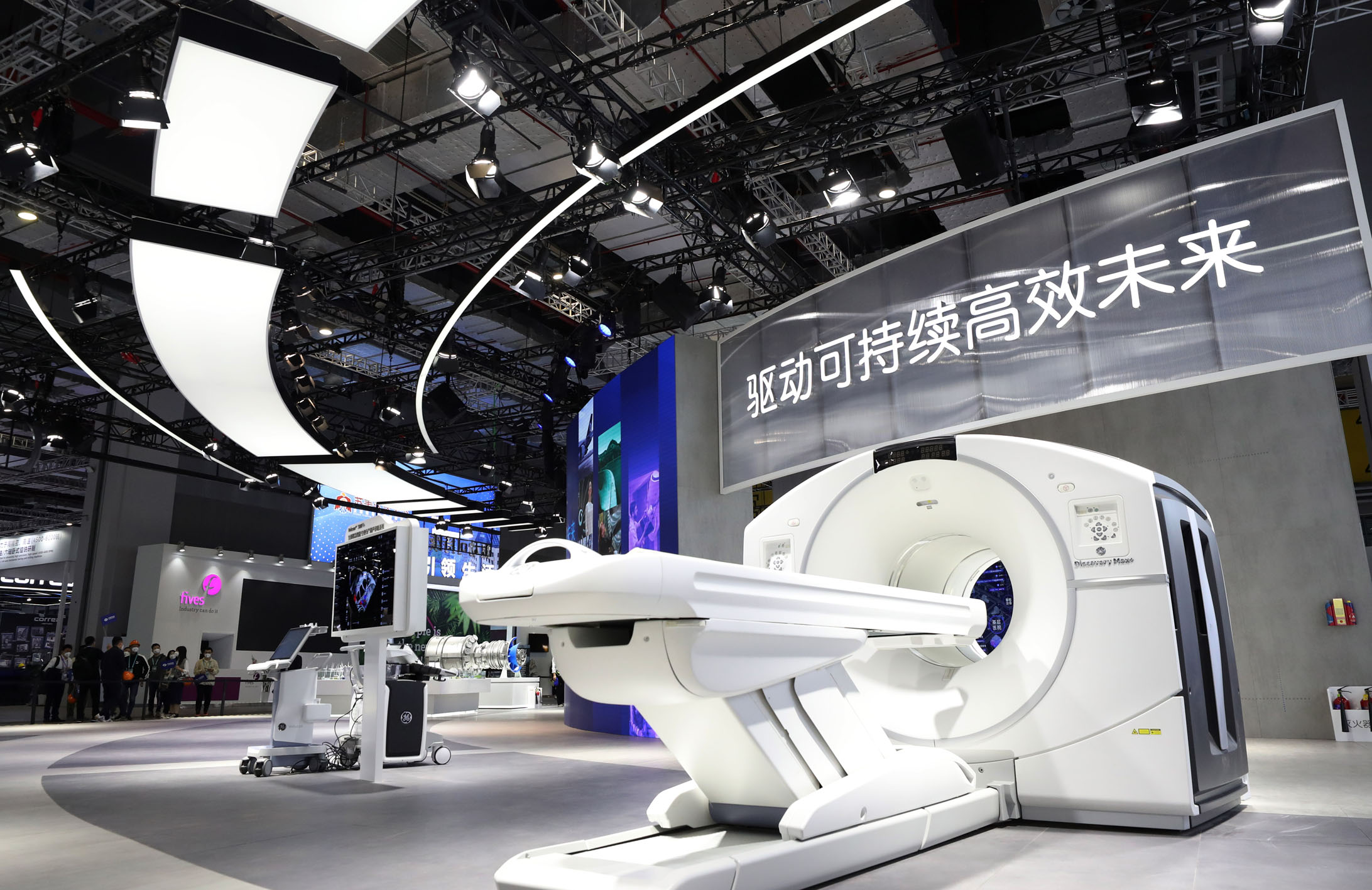 圖為GE公司在進博會展臺展出的一臺大型醫(yī)療設(shè)備。新華社記者 方喆 攝