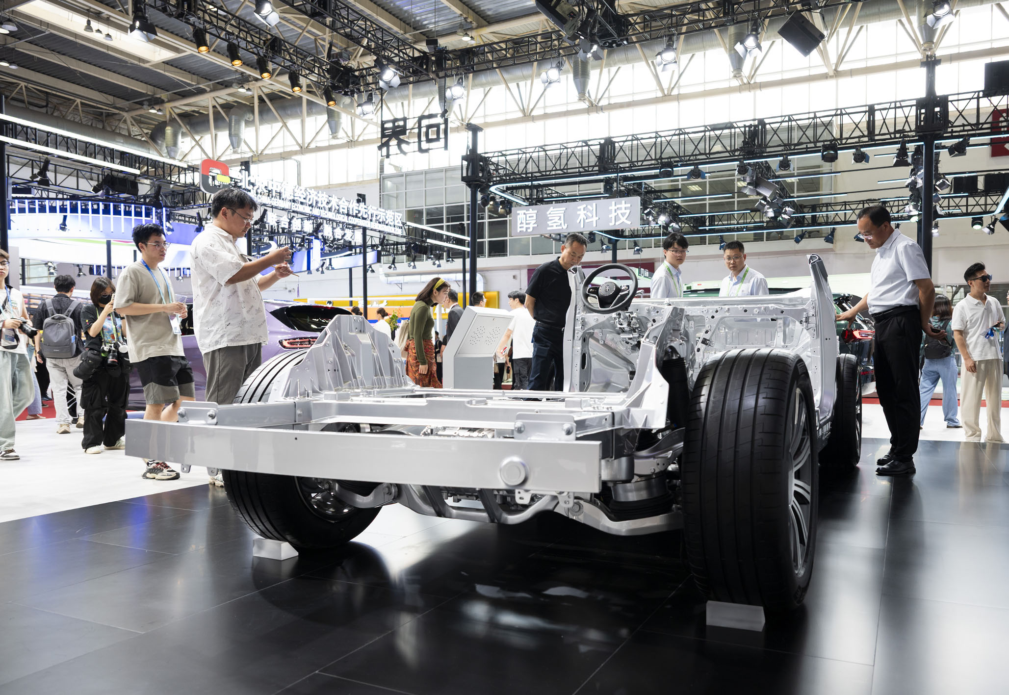 在今年7月舉辦的第三屆中國(guó)國(guó)際供應(yīng)鏈促進(jìn)博覽會(huì)設(shè)置的智能汽車鏈展區(qū),30余家中外企業(yè)和機(jī)構(gòu)集中展示產(chǎn)業(yè)鏈上中下游的關(guān)鍵技術(shù)和產(chǎn)品,從核心原材料、關(guān)鍵元器件到三電系統(tǒng)、智能網(wǎng)聯(lián),再到純電、混動(dòng)等不同技術(shù)路線的智能汽車產(chǎn)業(yè)鏈,生動(dòng)呈現(xiàn)產(chǎn)業(yè)協(xié)同創(chuàng)新發(fā)展的成果。圖為人們?cè)谥悄芷囨溦箙^(qū)參觀。