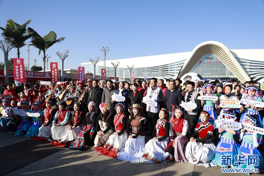 怒江球迷團(tuán)在玉溪高鐵站合影(2025年11月29日攝)。新華網(wǎng)發(fā)(楊楨宇 攝)
