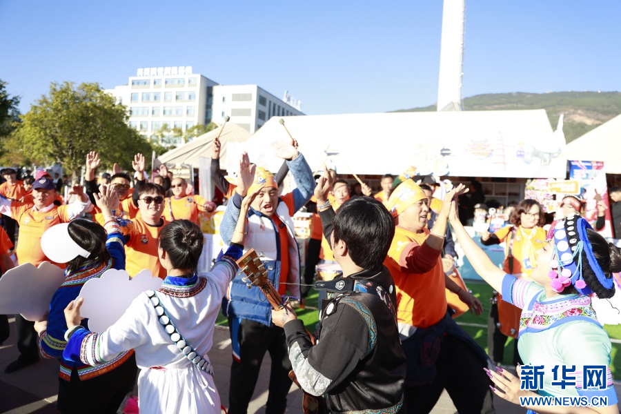 在市集上,有普洱的茶、玉溪的瓷、昭通的肉串……云南各地來(lái)客一邊不遺余力推介著自己的特產(chǎn),一邊與其他州(市)球迷打成一片。在歌舞與煙火中,熱鬧的氛圍持續(xù),直到夜幕降臨。