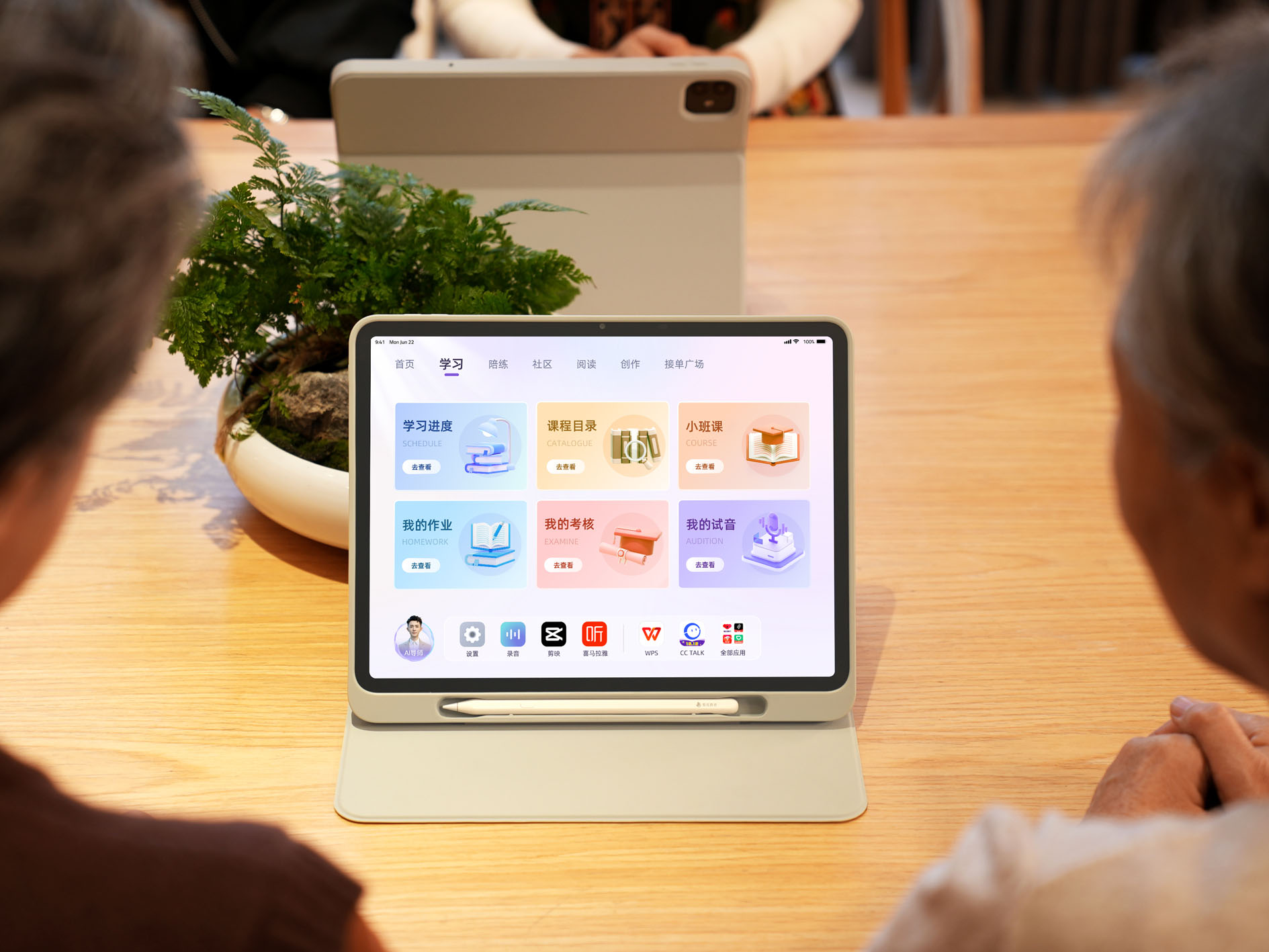 如果說(shuō)AI聲音陪練師解決了“練與評(píng)”的痛點(diǎn),梨花AI聲學(xué)學(xué)習(xí)機(jī)則構(gòu)建了“學(xué)與創(chuàng)”的全鏈路生態(tài)?!白鳛轫憫?yīng)銀發(fā)經(jīng)濟(jì)政策的數(shù)字適老創(chuàng)新終端,梨花AI聲學(xué)學(xué)習(xí)機(jī)在硬件與軟件上實(shí)現(xiàn)了雙重適老設(shè)計(jì)。”楊楠介紹,硬件采用12.7英寸2K類(lèi)紙屏、四喇叭環(huán)繞聲與大字體界面,適配中老年視覺(jué)與聽(tīng)覺(jué)習(xí)慣;軟件則整合“AI聲音陪練師”“AI導(dǎo)師”“AI測(cè)評(píng)”功能,搭配“分屏錄書(shū)”等特色設(shè)計(jì),構(gòu)建起“教-學(xué)-練-測(cè)-評(píng)-創(chuàng)-享-社交”的完整閉環(huán)。