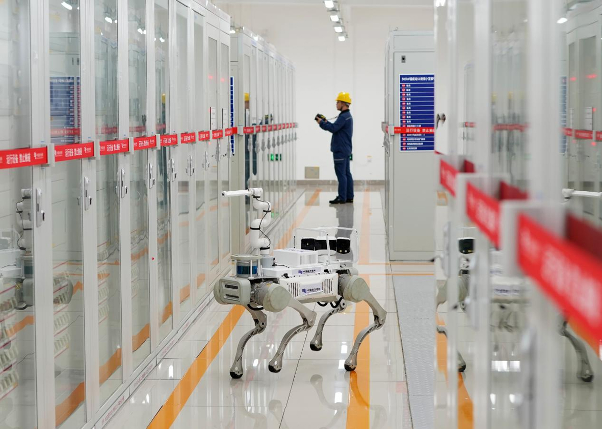 在南方電網(wǎng)廣西北海供電局500千伏福成變電站,四足巡檢機(jī)器人和運(yùn)維人員協(xié)同作業(yè),提高巡檢效率,確保電網(wǎng)安全穩(wěn)定運(yùn)行。馬華斌 攝
