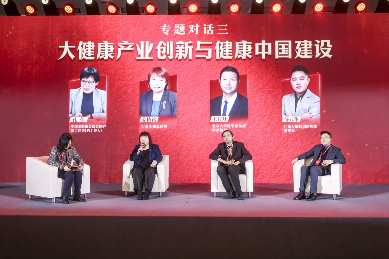 在“大健康產(chǎn)業(yè)創(chuàng)新與健康中國建設(shè)”專題對話中,中國老齡協(xié)會權(quán)益保護部主任孔偉、萬泰生物總經(jīng)理姜植銘、北京大學(xué)醫(yī)學(xué)部免疫學(xué)系教授王月丹、廣東萬德昌創(chuàng)新智能董事長鄒元華圍繞生物疫苗研發(fā)、免疫力管理、智能健康硬件應(yīng)用等核心議題進行了深入研討,為大健康產(chǎn)業(yè)創(chuàng)新與健康中國建設(shè)貢獻智慧。