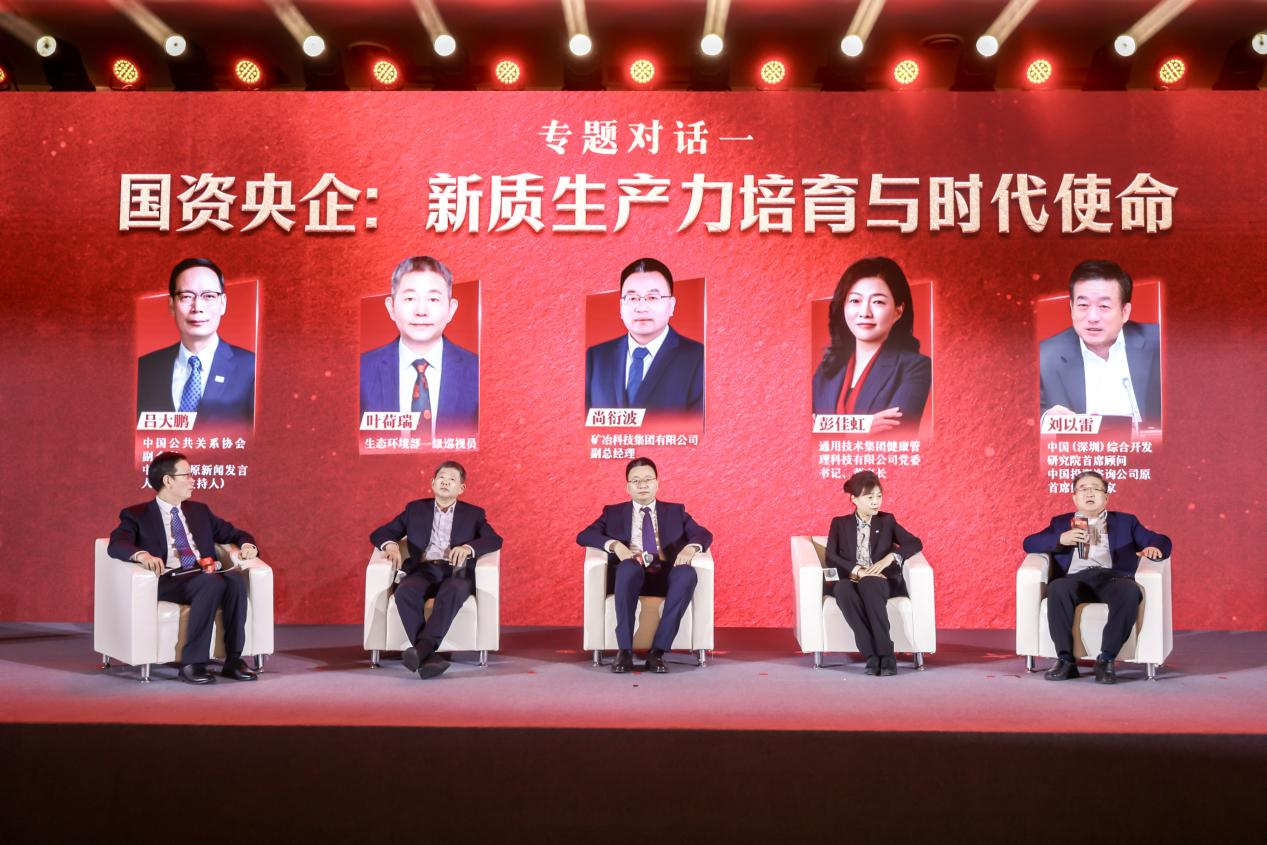 在“國資央企:新質(zhì)生產(chǎn)力培育與時代使命”專題對話中,生態(tài)環(huán)境部一級巡視員葉荷瑞,礦冶科技集團有限公司副總經(jīng)理尚衍波,通用技術(shù)集團健康管理科技有限公司黨委書記、董事長彭佳虹,中國(深圳)綜合開發(fā)研究院首席顧問劉以雷,中國公共關(guān)系協(xié)會副會長呂大鵬圍繞綠色發(fā)展轉(zhuǎn)化、產(chǎn)業(yè)轉(zhuǎn)型升級、健康服務(wù)普惠、企業(yè)治理優(yōu)化等核心議題作了分享。